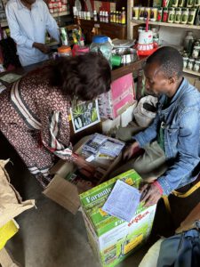 Da kam ganz schön was zusammen: Fast $1000 hat der Einkauf in der Veterinärapotheke gekostet. Injektionslösungen, Spritzen, Antibiotika – von allem etwas, gemäß dem Rezept, das der Tierarzt für René aufgeschrieben hatte. Wir haben alles in einen großen Karton gepackt und diesen dann in ein Versanddepot gebracht, von wo aus die Ware mit dem nächsten LKW nach Kamituga in unser Lager transportiert wird. Von dort aus werden die Medikamente dann auf die einzelnen Projekte verteilt und die Tierarzt-Termine koordiniert.